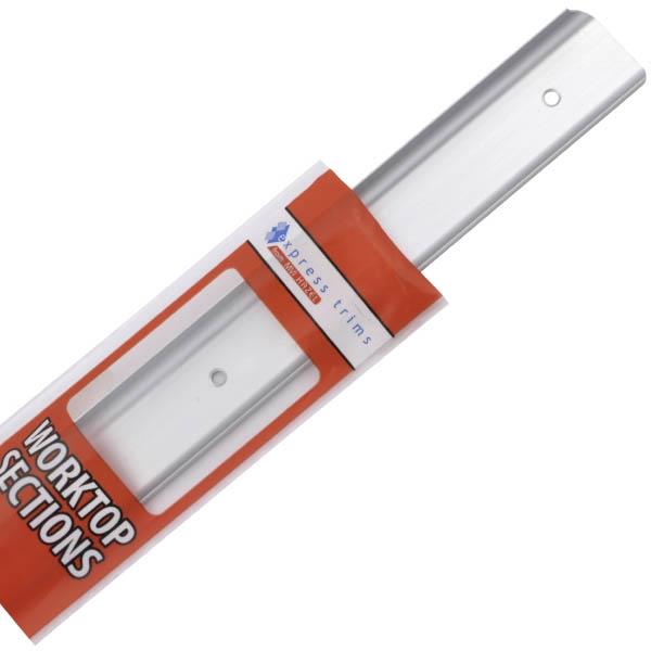 Aluminium duropal postform joiner Used for inserting in the gap where the edge of one worktop meets end of an adjacent worktop in a corner situation Length: 630mm Can be easily cut Suitable for duropal profile worktop